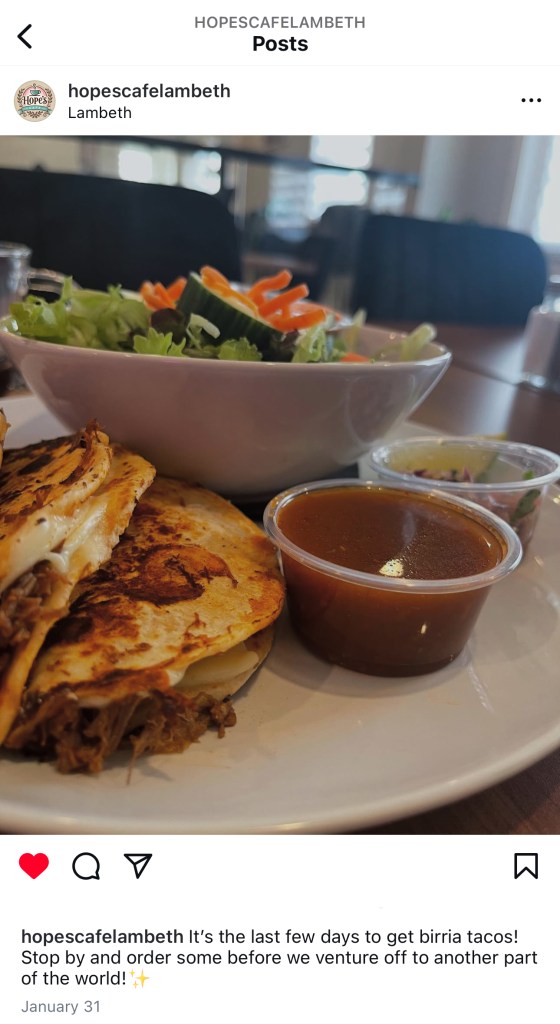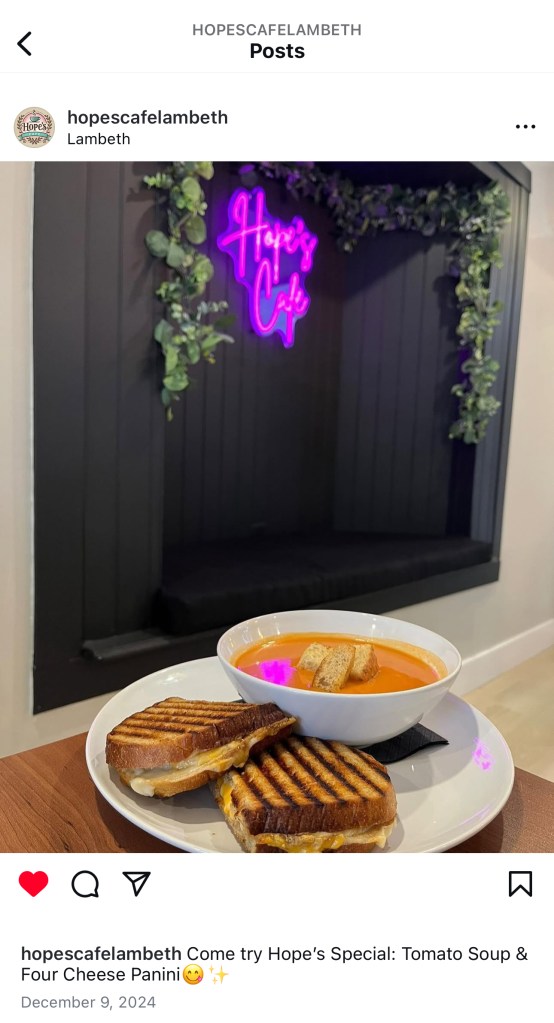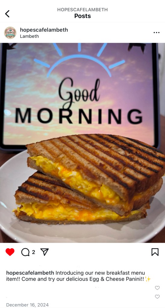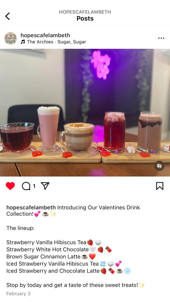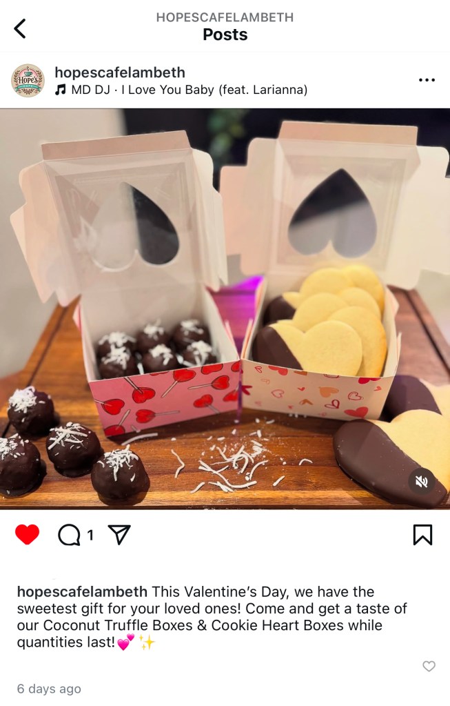 These are some examples of the posts I have created as the social media manager for Hope’s Cafe!